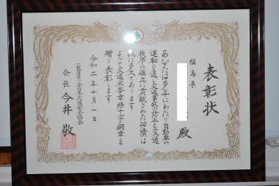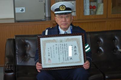 相馬警察署でいただいた表彰状を持ってきていただき、校長室にて記念撮影しました。