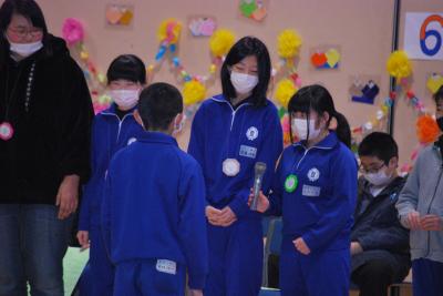 6年生から委員会やクラブ活動など、在校生に贈る言葉がありました。その後、5年生代表がしっかりと引き継ぐ決意を表明しました。堂々とはっきりとした口調でとても立派でした。