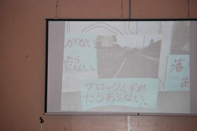 次に、5年生が「総合的な学習の時間」で作成した、地域の通学路危険箇所マップの紹介をしました。「どれぞれの方部の危険箇所が示されている掲示物が、保健室前に貼ってありますので、ぜひ見てください。」と呼びかけました。