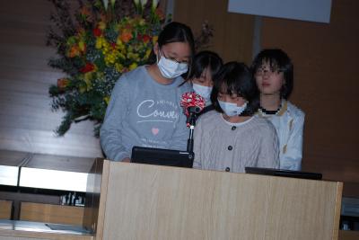 最後に、在校生代表の「送る言葉」がありました。6年生への感謝の言葉や中学校での頑張りを期待していることが発表されました。この贈る言葉も堂々として聞きやすく、立派でした。