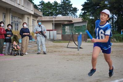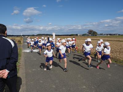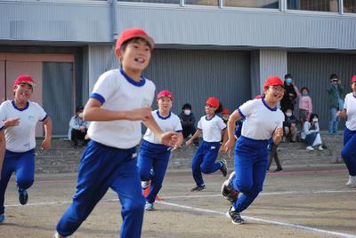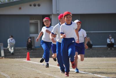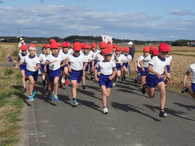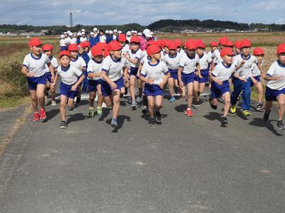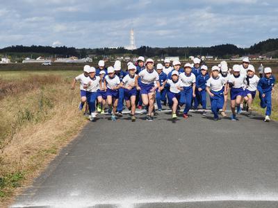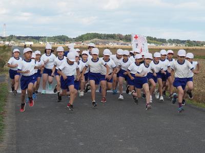 10月5日(木)3・4校時に全校生でマラソン記録会を行いました。秋晴れの爽やかな青空のもと、苦しくても自分の目標に向かって全力で取り組みました。1・2年生は1300m、3・4年生は1800m、5・6年生は2300m学校南側の田園風景の飯豊路を走りました。当日は赤十字奉仕団、交通安全協会、防犯協会飯豊支部、相馬フレンズ(消防署)、体育専門アドバイザー、PTA会長さん等、様々な方々のご協力を得て、マラソン中の子ども達の安全を確保しながら実施することができました。平日にも関わらず、たくさんの応援ありがとうございました。また、応援にくることができなくても家庭での励ましや期待の言葉をかけていただき、ありがとうございました。