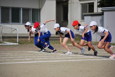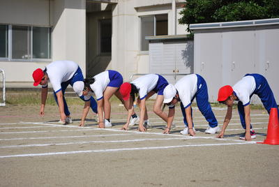 6年生は、クラウチングスタート。陸上大会に向けて練習してきた成果をここで発揮します。