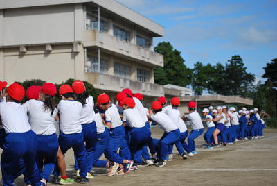 フルメンバーでの力勝負!!!しっかり脚を踏ん張って、思いっきり綱を引きます。