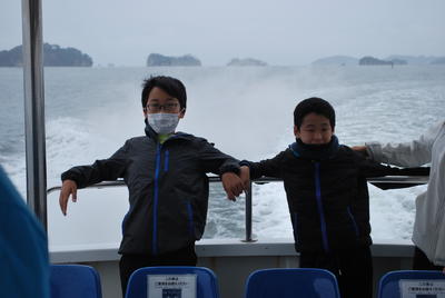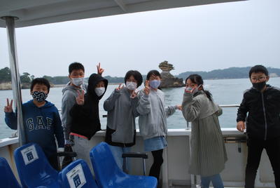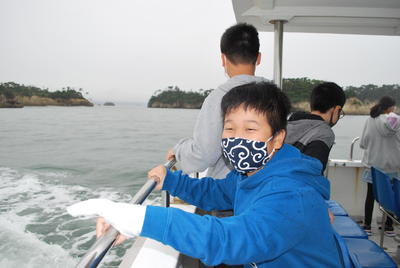 まずは、宮城県松島といえば、日本を代表する景勝地。湾内の島々を遊覧船に乗って楽しみました。それぞれの特色ある島を観るというよりも、「友だちと船に乗っている!」「揺れている」という事の方が楽しかったようです。