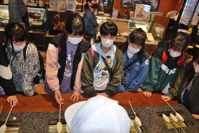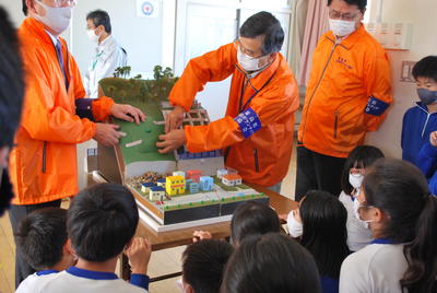 みんな熱心に説明を聞いています。模型でシュミレーションは、分かりやすいです。