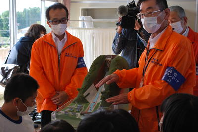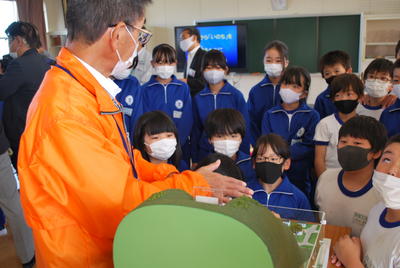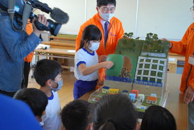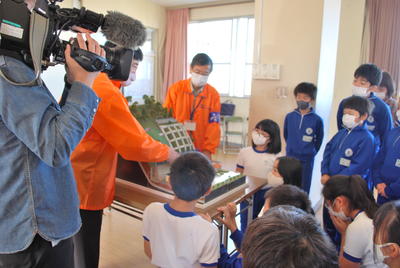 10月13日(火)5年生対象の出前講座(防災)が3・4校時に実施されました。相双建設事務所から2名、砂防ボランティア6名おいでいただき、豪雨や洪水の危険性や避難の大切さについて教えていただきました。福島民報社や福島建設工業新聞社の記者、NHKの取材クルーも来て、子ども達の学びの様子を取材しました。NHKでは本日13日の夕方18:10からの「はま、なか、あいづ」で放映されるそうです。