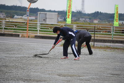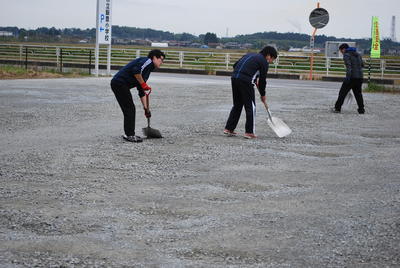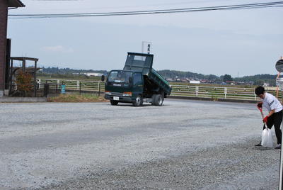 保護者駐車場は、車の走行により多くの深い凹地ができていました。本日、砂利6トンを入れ整地を行いました。これで以前よりもお子さんの送迎のための走行はしやすくなったと思います。これからも、安全に気を付けて、駐車場内は十分な徐行運転により送迎をお願いします。