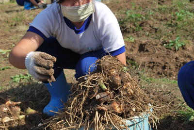 これが重い!!ここから、ドン、ドンと土を落として芋をとっていくよ。