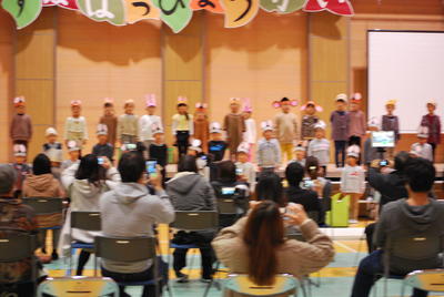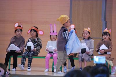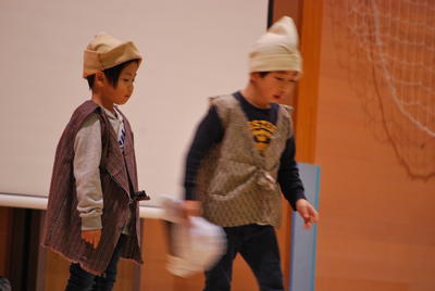 国語科で学習した「おむすびころりん」教科書に出ていなかった、森の動物や隣のおじいさんも登場します。それぞれの特技発表もありました。