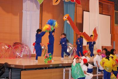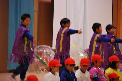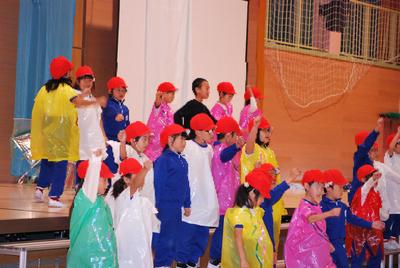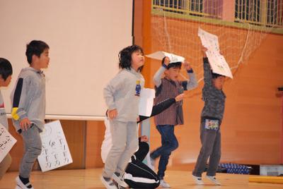 国語科で学習した「スイミー」を歌やダンスを交えて表現しました。「みんなで協力して、見ている人を楽しませよう」のめあてをもち、頑張りました。でも、一番楽しんだのは2年生自身でした。一人一人が自信をもってセリフを言い、動き、歌いました。