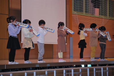 次は、音楽隊です。「きらきらぼし」の歌と鍵盤ハーモニカの演奏をしました。