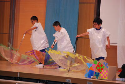 フィナーレ~すばらしい歌声が体育館に響きました。ミュージカルを観ている感じで、一人一人の大きな動きやはっきりとしたセリフ等、みんな2年生の劇に魅了されていました。