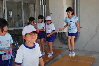 暑くても縄跳び頑張っている人たちもいました。もう汗びっしょりです。今から練習していたら、とっても上手になりますね。