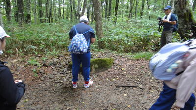 最初は、ブナ林の中を30~40分歩きます。歩きはじめは「ゆったりしたペース」で歩きます。まだまだ大丈夫!