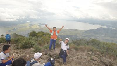 5・6班の記念写真です。標高1816m登りきりました。磐梯山に登ったということは、いつまでも子ども達の心に残ることでしょう。よく頑張りました!!