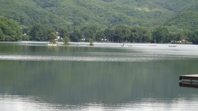 なんとか、オールの扱いも慣れてきたようです。さぁ、湖一周いけるか。