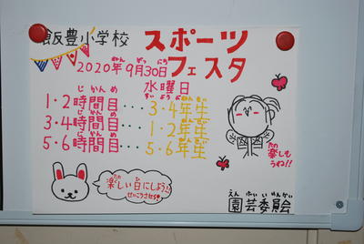 来週9月30日(水)は、飯豊スポーツフェスタが開催されます。校庭では、力強い綱引きの姿や夢中になってかごにお手玉を入れる姿が見られています。いよいよ迫ってきたなぁという感じがします。6年生は応援団が決まり校庭では、応援練習が始まりました。力強い応援期待しています。
