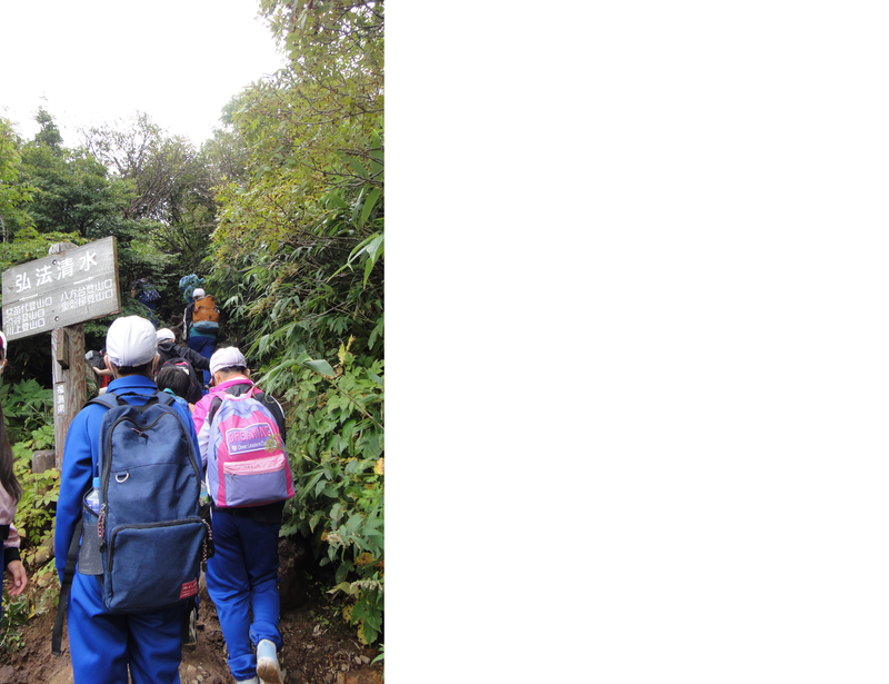 2時間登って「弘法清水」に着きました。少し休憩をしたら、すぐに山頂を目指して出発です。ここから約1時間がさらにきつい。ここから気持ちを強くもって!