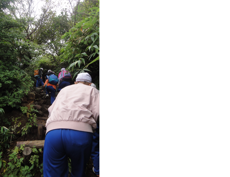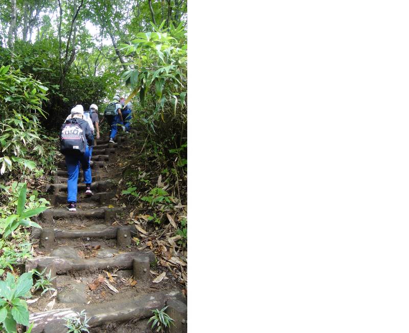こんな急な登り山道です。これはきつい。おおきな岩もごろごろです。手を使って登るところも。ここまできたら、登りきるしかありません!