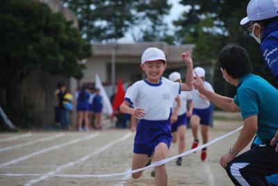 1年生は、ゴールを目指して、まっすぐ元気に走ります!