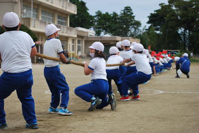 3・4年生が心を一つに、力の限り綱を引きます。