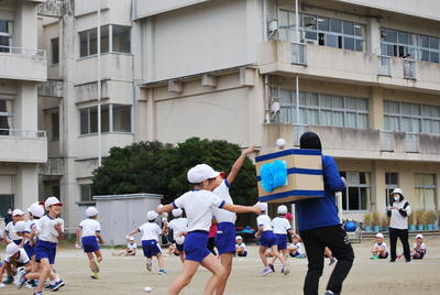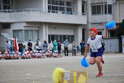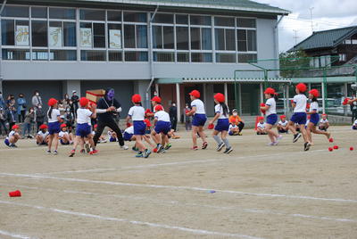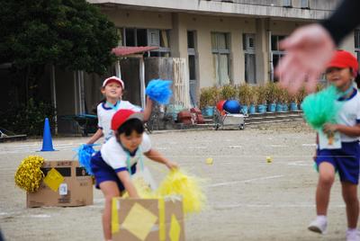 2年生は「おいかけっこ 玉入れ」です。2年生は鬼ごっこが大好き。鬼ごっこと玉入れをおミックスしました。
