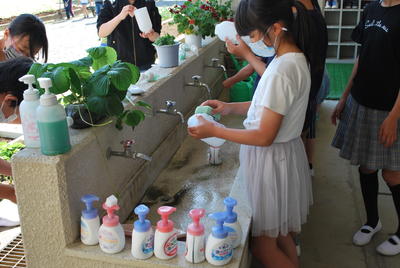 保健委員会は、各フロアーの水道やトイレにある、ポンプ式の泡石けんの容器を洗ってくれました。