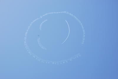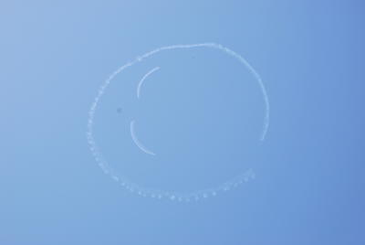 6月9日12時43分、相馬市の空に大きなスマイルマークが浮かび上がりました。まさしく絶好の青空の中、室屋義秀さんの操縦する飛行機が、スマイルマークを描き上げました。子どもたちも外に出て、スマイルマークができあがるのを歓声を上げて、見ていました。空を見上げるというのは気分も晴れますね。元気が出ました!