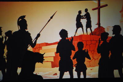 希望した子が、スクリーンの後ろで何やらやっています。光と影で、不思議な動きがここから!