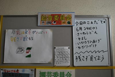 給食委員会は、毎日当日の給食メニューを書いてお知らせしてくれるようになりました。