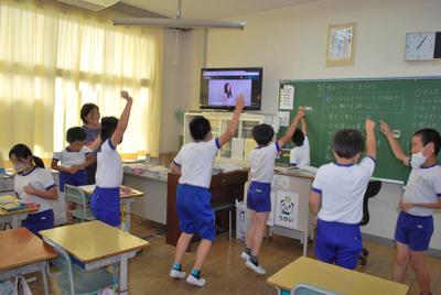 6月26日朝、放送でプール開き集会が行われました。まずは、校長先生のお話です。「プール清掃をしてくださった先生方、補修をしてくださった市役所の方々、準備を進めてくれた6年生や運動委員会の人たち等、プールが使えるようになるまで見えないところで頑張ってくださった人々に感謝しましよう。」ということ。「動物のぞうは体が大きいですが、泳ぎが上手いことから、今年は3つの『ぞう』を大切にしましょう。友だちや先生のよい動きをよく『みるぞう』。水泳は気持ちがいいですが、命に関わることもあるので、しっかりと話を『きくぞう』。目標やめあてをしっかりもって『やるぞう』というお話がありました。