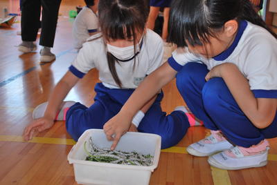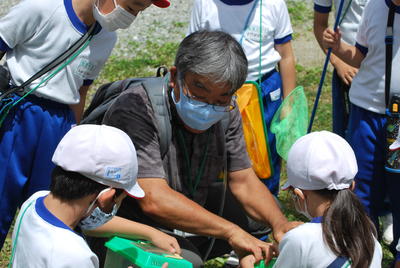 6月29日3・4校時、2年生は生活科の時間に、福島県農業総合センター浜地域研究所「三田村敏正」先生においでいただき、校庭の虫について、たくさん教えていただきました。梅雨の晴れ間でよい天気に恵まれ、校庭の放課後児童クラブの建物裏の草むらや湿った木の根元などで、いろいろな虫を見つけましたよ。