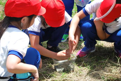 虫かごの中には、どんな昆虫が入っているのかな?カエルかも?