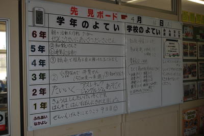 なになに、1年生は身体測定があります。2年生は体育でアスレチック・ジャングルジム遊びのようですね。学校の予定では、先日暴風雨でできなかった委員会活動があるようです。しっかり集合場所を確認して、組織づくりをやってきてください。このように、子どもたちは1日の予定を朝や休み時間に確認します。自分たちで考えて動けるように…!