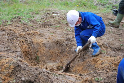 4年生が昨年収穫した相馬土垂の幾つかを種芋にしようと、冬の間土の中に埋めて越冬させていました。今日、どれだけ種芋として使えるものがあるか…掘り出してみたら……