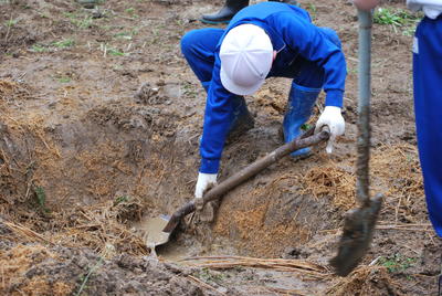 埋めたところを掘ってみると、あらら水がしみ出てきている?溜まっている?