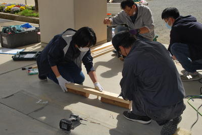 新型コロナウイルス感染拡大防止対策により、臨時休業が延長され、子どもたちの体力の低下が懸念されています。飯豊小PTA本部役員の皆様の発案で、子どもたちが楽しみながら縄跳びに取り組み、体力向上もねらうことができる「縄跳びジャンプ台」を製作し寄贈しようということになりました。本当にありがたいことです。5月10日13:30~学校において本部役員を含めPTA有志の方々10名が集まり、製作をしていただきました。材料費は、Nリゾート様から社会奉仕活動の一環としてご寄付いただきました。この場を借りまして、御礼申し上げます。