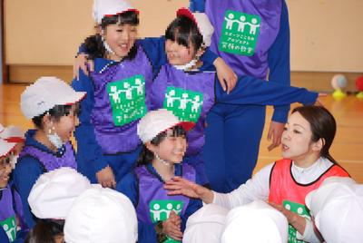 2月19日(水)スポーツ心のプロジェクトの夢先生「法師人 美佳(ほうしと みか)」さんに、おいでいただき5年生と一緒に体を動かしたり、今までの経験で学んだことを伝えていただいたりしました。法師人先生は、小学校から大学までサッカーをやり、卒業後は「さいたまレイナス(現 浦和レッズレディース)に加入し、小柄ながらも活躍されました。その後、アルビレックス新潟レディースに移籍し、引退後は、全国で行われている「夢の教室」に携わっていらっしゃぃます。まずは、体育館で条件付き鬼ごっこで遊びました。