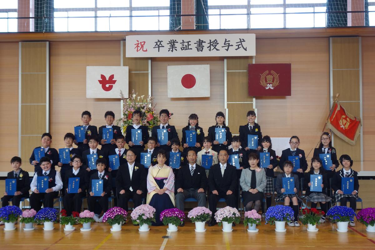 本日、卒業証書授与式が体育館で挙行されました。新型コロナウイルスの影響で、ご来賓の皆様、保護者の皆様のご臨席は叶いませんでしたが、子どもたちは、堂々とした態度で卒業証書を受け取り、将来の夢をはっきりとステージの上で語ることができました。今までの内容とは異なりますが、何よりも大きな節目である卒業式ができたこと、嬉しく思います。「卒業証書を手にした25名のみなさん、卒業おめでとうございます。」これからさらに大きなステージに向かい、力強く羽ばたいてください。教職員一同、みなさんのことを応援しています。!
