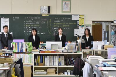 春は別れの季節でもあります。この度の人事異動で4名の方が、ご栄転されます。今日は、職員室での職員離任式を行いました。ユーモアと適切な指導で楽しさと安心感をもたらしてくれたM教頭先生。cool(クレバー)な頭脳と優れたバランス感覚のH先生、優しい笑顔が素敵な初任校飯豊小のY先生、とってもおいしい給食を毎日つくってくださったMさん、大変お世話になりました。お体に気をつけて新任地でのますますのご活躍をお祈りしています。