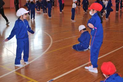 3連休も終了し、いよいよ3学期の本格始動です。子どもたちは、なわとび記録会に向けて体育授業や休み時間など、たくさん練習に取り組んでいます。1月14日(火)の業間は、低学年の「なわとび名人に学ぼう!」の時間でした。体育館の4隅にそれぞれの学年の名人がいますので、そこにいって自由に教えてもらいます。友だち同士の教え合いがとてもよいですね。