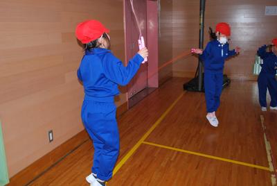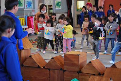 その後、5年生が「鬼が城」に入り、鬼めがけて幼稚園児が豆をぶつけて、退治しました。