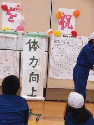 2月6日(木)業間に体育館において、全クラスごとに長縄の記録にチャレンジしました。各クラスが体育館いっぱいに広がり長縄に取り組みました。外の気温があまりにも寒いため急遽、体育館での長縄となりましたが、一斉に取り組む姿は、よいものでした。記録はクラス、学年ごとに差はありましたが、これからの練習で慣れれば回数も伸びてくることでしょう。今日のベスト3は、1位3年1組183回、2位3年2組168回、3位6年生144回でした。次回も楽しみです。