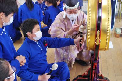 その後、白組代表の子が2つある垂れ幕のひものうち1つを選択し、今年の飯豊小の頑張ることが決まりました。