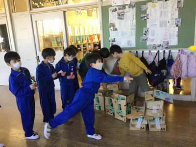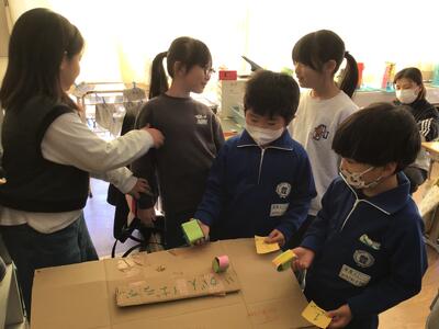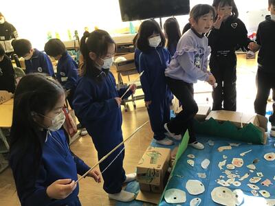 2年生が これまで作ってきたおもちゃで お祭りを開きました。