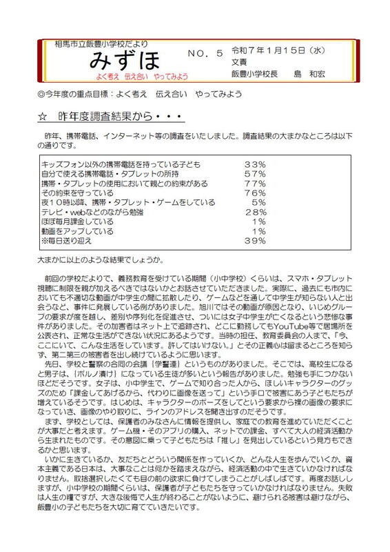 子どもたちの健やかな成長を願い、保護者の意識を高く持ってほしいです。