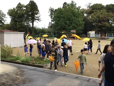 アナウンスがあり、校庭はすっかりきれいになっています。