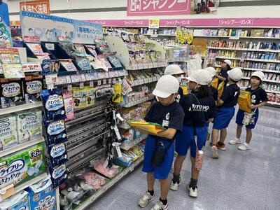 近くのお店の学習で、2年生がファミリーマートに見学に行きました。