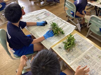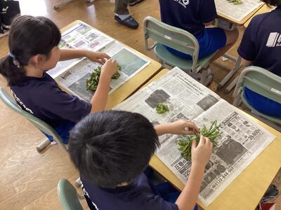 枝豆の豆を織り出す作業から、子どもたちが関わり、収穫の喜びを味わえたようです。