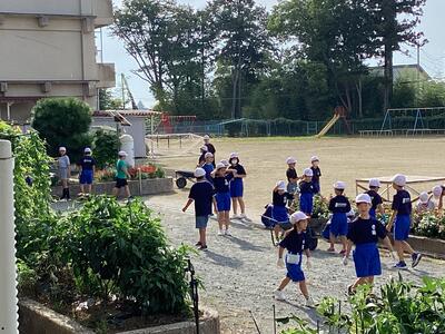 一年生が「先生 おもしろいね」といいながら、トイレ休憩から帰ってくる姿に